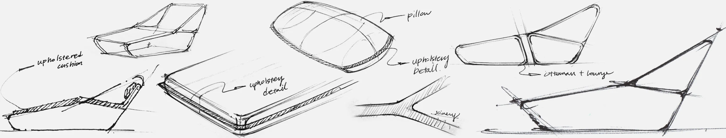 The remembrance of being cuddled by a mother from an early childhood — it still remains vividly as the most serene moment of life. The main agenda of chaise lounges is to define and serve such tranquillity more than any other types of seating. Inspired by a contour of bodies of a mother and a child playing together, Harbor is an in/outdoor chaise lounge with elegant curves embedded in a sleek gesture. By having the frame designed in a way which does not require any vertical structure underneath, the seat tenderly bounces when being sat, just like how a mother cuddles a child.